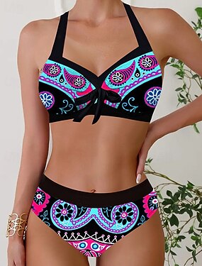 Mulheres Tankini Maiô de duas peças Em V Roupa de Banho Floral Roupa de Banho Azul Laranja Respirável Secagem Rápida Leve Sem Manga - Natação Surfe Praia Verão Primavera Tamanho Grande