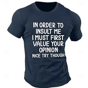 Camiseta Gráfica Masculina de Manga Curta Engraçada de Atitude Sarcástica 'Para Me Insultar Primeiro Devo Avaliar Sua Opinião'