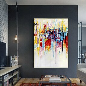 Pintura a Óleo Pintados à mão Panorâmico horizontal Abstrato Paisagem Moderno Incluir moldura interna