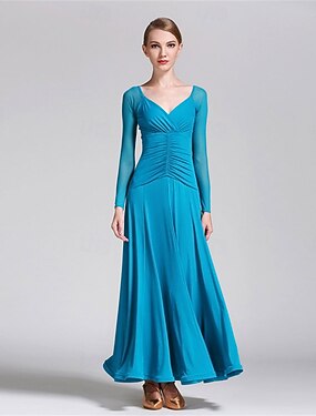 Dança de Salão Vestido Cristal / Strass Mulheres Espetáculo Roupa Diária Manga Longa Elastano