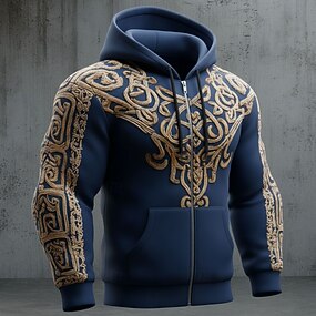 Homens 3D impressão celtas Moletom Jaqueta Viking 3D Fantasia. Impressão completa Manga Longa Com Zíper Streetwear Férias Para Noite Azul Preto Vermelho Marron Zíper Outono Inverno Designer S M L XL