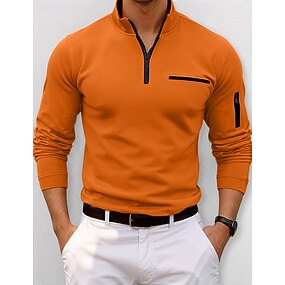 Homens Camiseta Polo Pullover Esportes Roupa Diária Quarter Zip Manga Longa Moda Confortável Tecido Bolsos Zip Up Primavera & Outono Normal Preto Branco Azul Marinha Laranja Camiseta Polo