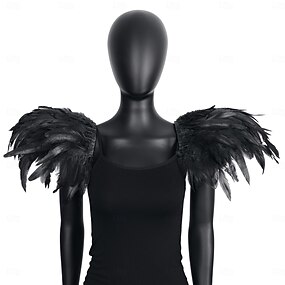 Carnaval 2026 - Acessórios de Samba do Carnaval do Rio - Ombreiras de Pena Preta Feminina com Asas Almofadas de Ombro do Fantasia Gótica Vitoriana