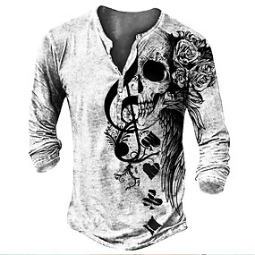 Homens Camiseta Camisa Henley Camisetas Camisetas engraçadas Designer Básico Clássico Camisa Gráfico Caveiras Música Manga Longa Camisa Branco Ao ar livre Diário Esportes Henley Primavera Verão Roupa