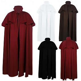 Vintage Punk e gótico Medieval Capa Vampiros Cor Sólida Colarinho Chinês Fantasia Homens Mulheres Unisexo Viking Fantasia Dia Das Bruxas Carnaval Baile de Máscaras Festa dia das Bruxas Mascarilha