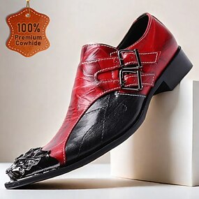 Loafers de Couro de Vacas Premium Masculinos com Fivelas Duplas e Ponta Dourada Design Ousado em Vermelho e Preto e Detalhe de Cabeça de Leão – Sapatos Slip-On Estilosos para Homens que Estão Sempre
