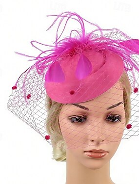 Decoração de Cabelo Pena Tecido Casamento Aniversário Corrida de cavalos Elegante Vintage Clássico Com Penas Tule Capacete Chapéu