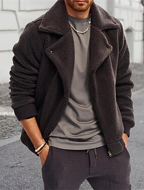 Homens Casaco de inverno Casaco de lã Jaqueta casual Casual Diário Térmico / Quente Bolsos Zip Completo Outono Inverno Côr Sólida Roupa de rua Diário Entalhe Padrão Preto Casaco