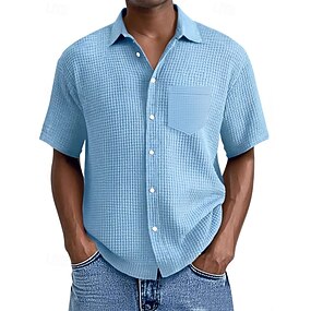 Homens Camisa Social Camisa Waffle Camisa casual Azul Preto Branco Verde Claro Rosa Manga Curta Tecido Colarinho de Camisa Casual Diário Franzido Roupa Elegante Moda Casual