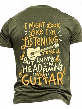 Camiseta masculina com estampa vintage retrô "Nunca subestime um velho com um violão" e notas musicais. Ideal para o Dia dos Pais. Disponível nos tamanhos P, M, G, GG, XGG e XXGG.