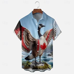Dia do Canadá Homens Bandeira Folha de Bordo Ganso Camisa Social camisa de verão camisa de botão Manga Curta Moda Casual Feriado Verão Primavera Aberto para a Lateral Impressão 3D camisas de