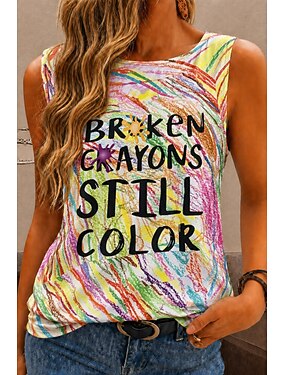 Mulheres 100% Algodão Camiseta Camisa de algodão T-shirt Tecido Vintage Moda à moda Sem Manga Gola Redonda Decote Redondo Tops regulares Casual Diário Para Noite Arco-íris Verão Primavera