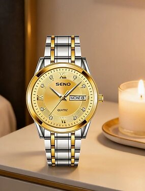 Relógio de Pulso Masculino Relógio de Quartzo Masculino de Moda Mostrador Luminosa com Strass e Exibição de Data e Calendário - Adequado para Interiores e exteriores viagens e negócios Melhor Escolha