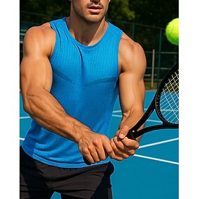 Homens Cor Sólida Camisola de alças do exercício Tanque Sem Manga Redutor de Suor Pavio Humido Respirável Tênis Golfe Pickleball Decote U Preto Branco Azul Roupas de tênis