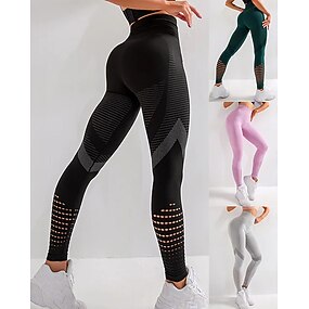 Mulheres Calças de ioga Leggings de ioga Bolsos laterais Butt Lift Compressão abdominal Cintura Alta Pilates Treino de Ginástica Exercite-se Meia-calça Côr Sólida Preto Verde Claro Roxo Claro Elastano