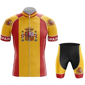Homens Camisa de ciclismo com shorts Manga Curta Ciclismo de Montanha Ciclismo de Estrada Verão Amarelo Espanha Moto Tapete 3D Secagem Rápida Bolso Traseiro Pavio Humido Respirável Elastano Esportes