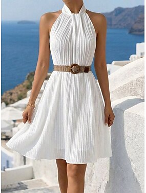 Mulheres Vestido midi Vestido casual Vestido A Line Elegante à moda Casual Diário Férias Ajuste Largo Listra Manga Curta Gola Redonda Cinzento Azul Claro Verão Primavera