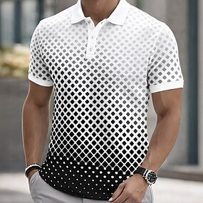 Homens Geométrico Linha Pólo Manga Curta Camisas polo Camisas de colarinho Business casual Ao ar livre Roupa Esportiva Roupa Diária Bolsos Impressão 3D Botões Verão Azul Preto e Branco Preto