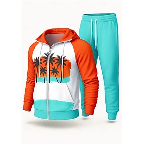 Homens Moletom Agasalho de 2 peças Conjuntos de moletom Com Cordão Zip Up Árvores / Folhas Conjuntos Outono Inverno Laranja Vocação Exterior Viagem Leve Da Moda Manga Longa Esporte Roupas Esportivas