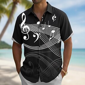 Homens Notas musicais Camisa Social camisa de botão Camisa social casual Manga Curta Vintage retrô Diário Festival de Música Primavera Outono Aberto para a Lateral Impressão 3D camisas de colarinho