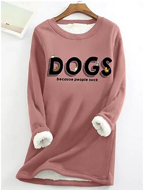 Mulheres Moletom Com Cordão Imprimir Gráfico Animal Letra Quente Casual Difusa Manga Longa Decote Redondo Tops regulares Casual Rua Preto Rosa Escuro Cinzento Primavera Outono Inverno