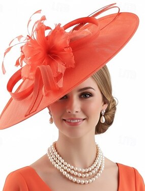 Chapéus Chapéu de Sol de Poliéster Festa de Férias Chá de Bebê Corrida de Cavalos Coquetel Elegante Vintage Proteção Solar com Acessório Floral com Plumas