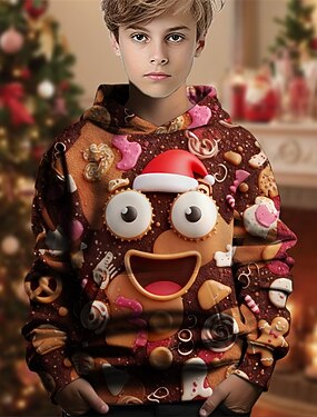Natal Para Meninos 3D Gráfico Gingerbread Men Moletom Manga Longa Primavera Outono Moda Roupa de rua Infantil 4-12 anos Com Capuz Ao ar livre Casual Diário Normal