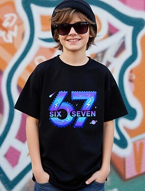 Algodão Infantil Para Meninos Preto Gráfico Gírias engraçadas 67 Camisa Blusa Gola Redonda Manga Curta Ao ar livre Dia a Dia Moda Roupa de rua Designer Estampado Verão