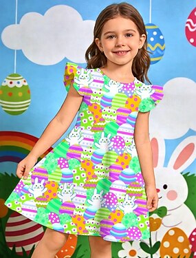 Páscoa Meninas 3D Gráfico Coelho Vestido Manga Curta Impressão 3D Verão Primavera Diário Férias Festa Estilo bonito Básico Casual Infantil 4-12 anos Vestido casual Vestido A Line Altura dos Joelhos