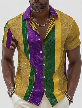 Carnaval Homens Carnaval Camisa Social camisa de botão Manga Curta Moda Casual Férias Presente Feriado Verão Primavera Aberto para a Lateral camisas de colarinho Um bolso frontal Verde