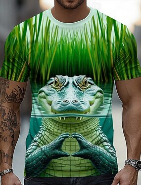 Homens Crocodilo 3D Camiseta Manga Curta Camiseta Impressão 3D Gola Redonda Camisa Exagerado Designer Festa Feriado Verde 1# Verde 2# Verde 3# Verão Primavera Roupa S M L XL XXL XXXL