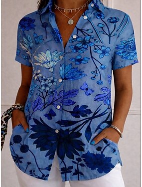 Mulheres Camisa Social camisa de botão Camisa casual Tops de verão Botões Imprimir Floral Gráfico Vintage à moda Moderno Manga Curta Colarinho de Camisa Tops longos Diário Azul Branco e Azul Arco-íris