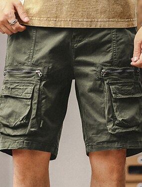 Homens Calças de carga Bermuda Cargo Calção Shorts casuais Bolsos Cintura elástica Tecido Comprimento do joelho Casual Ao ar livre Streetwear Moda Roupa de rua Preto Marron Sem Elasticidade
