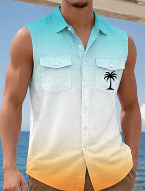 Homens Coqueiro Cor gradiente Plantas Tropicais Camisa Social Camisa havaiana Camiseta Aloha Sem Manga Recorrer férias na praia Verão Primavera Aberto para a Lateral Impressão 3D Dois bolsos frontais