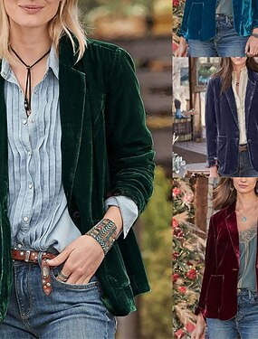 Mulheres Blazer Blazers de veludo Confortável Bolsos Botões Elegante Moda Ao ar livre Tecido Para Noite Casual / Diário Final de semana Não Trespassado Padrão Lapela Normal Manga Longa agasalhos