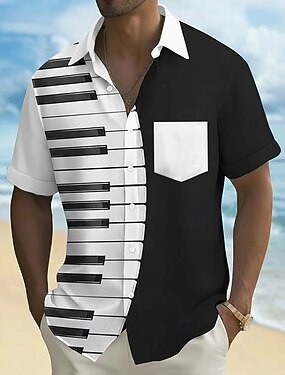 Homens Piano Notas musicais Camisa Social camisa de verão camisa de botão Manga Curta Moda Casual Diário Festival de Música Verão Primavera Aberto para a Lateral Impressão 3D camisas de colarinho Um
