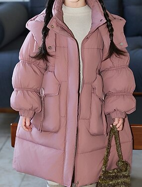 Infantil Para Meninas Jaqueta de penas Casaco puffer Bloco de cor Esportes Bolsos Mantenha Quente A prova de Vento Ao ar livre Casaco agasalhos 5 anos + Inverno Rosa Roxo Cáqui