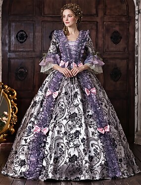 Rococó Barroco Vestido de Baile Longo Vestidos Vestido de Baile Mangas curtas Princesa Casamento Renda Laço Floral De Baile Decote Quadrado Fantasia Mulheres Real Dia Das Bruxas Carnaval Baile de