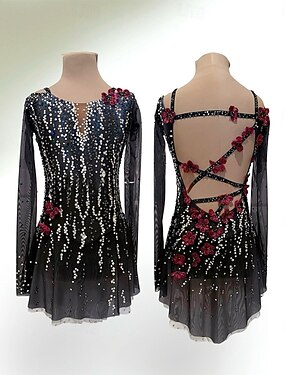 Vestidos para Patinação Artística Mulheres Para Meninas Patinação no Gelo Vestidos Preto Com Transparência Elastano Com Stretch Treino Ensaio / Prática Profissional Roupa para Patinação Térmico