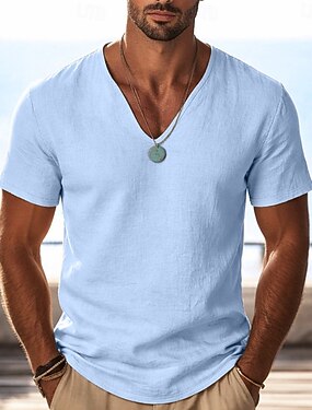 Homens Camiseta Camisa de manga curta T-shirt Camiseta de linho Manga Curta Decote V Decote mergulhador Primavera Verão Verão Primavera Côr Sólida Tecido Roupa de rua à moda Lazer Clássico Puro