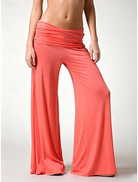 Mulheres Perna larga chinês Férias Moda Roupa de rua Comprimento total Cintura Alta Tecido Confortável Conforto Macio Com Stretch Ao ar livre Rua Laranja Verão Primavera Outono Ajuste Largo