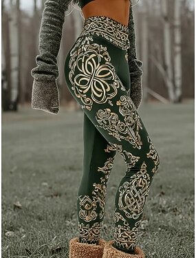 Mulheres Leggings Leggings aconchegantes Férias Vintage Estilo Étnico Comprimento total Cintura Alta Gráfico Estampado Confortável Com Stretch Casual Diário Férias Preto Verão Primavera Outono Inverno