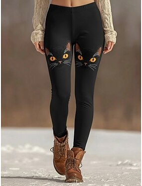Mulheres Leggings Leggings aconchegantes Férias Vintage Estilo Étnico Comprimento total Cintura Alta Gráfico Animal Gato Estampado Confortável Com Stretch Casual Diário Férias Preto Primavera Outono
