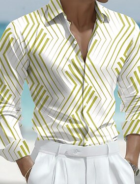 Homens Camisa Social Saia camisa de botão Geométrica Diário Casamento Azul Verde Manga Longa Aberto para a Lateral Todas as Estações Roupa