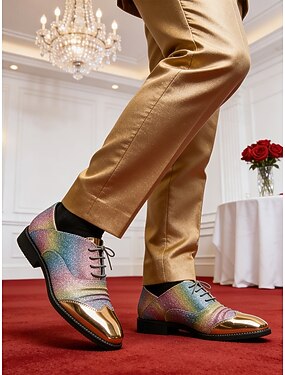 Sapatos Oxford masculinos em couro sintético brilhante com efeito arco-íris, sapatos de casamento modernos e elegantes para noivos estilosos.