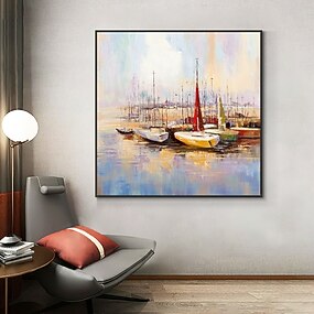 Pintura a óleo pintada à mão arte da parede abstrata barco paisagem arte em tela decoração para casa decoração lona enrolada sem moldura não esticada