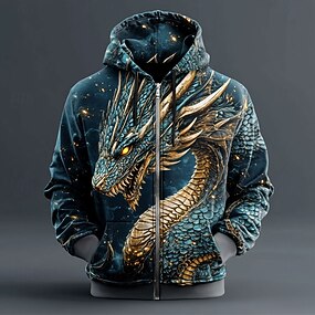 Homens Moletom Azul Com Capuz Dragão Impressão 3D Legal Outono Inverno Roupa Moletons Moletons Manga Longa