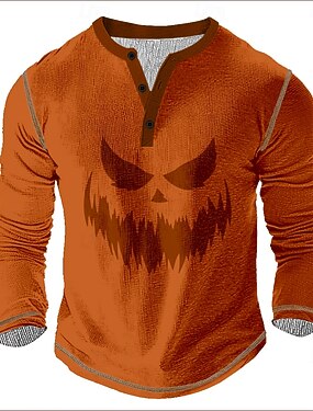 Homens Abóbora Camisa Henley Camiseta Waffle Manga Longa Vintage Diário Retro Vintage Esportes Casual Feriado Outono Primavera Verão Todas as Estações Marron Escuro Preto Laranja Henley Camiseta