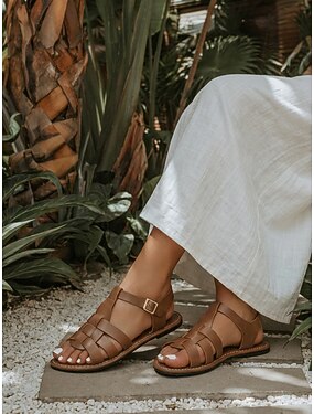 sandálias gladiadoras femininas marrons com zíper e fivela – botas boho rasas e abertas para festivais de verão, acampamentos e uso casual ao ar livre