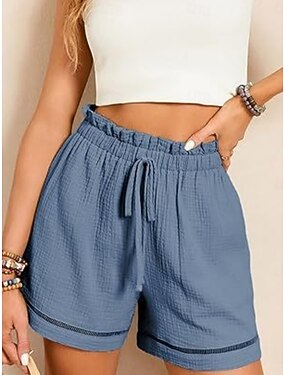 Mulheres Bermudas Waffle chinês Calção Férias Moda Roupa de rua Comprimento do joelho Cintura Alta Tecido Cintura elástica Confortável Conforto Macio Com Stretch Ao ar livre Rua Roupa Diária Azul